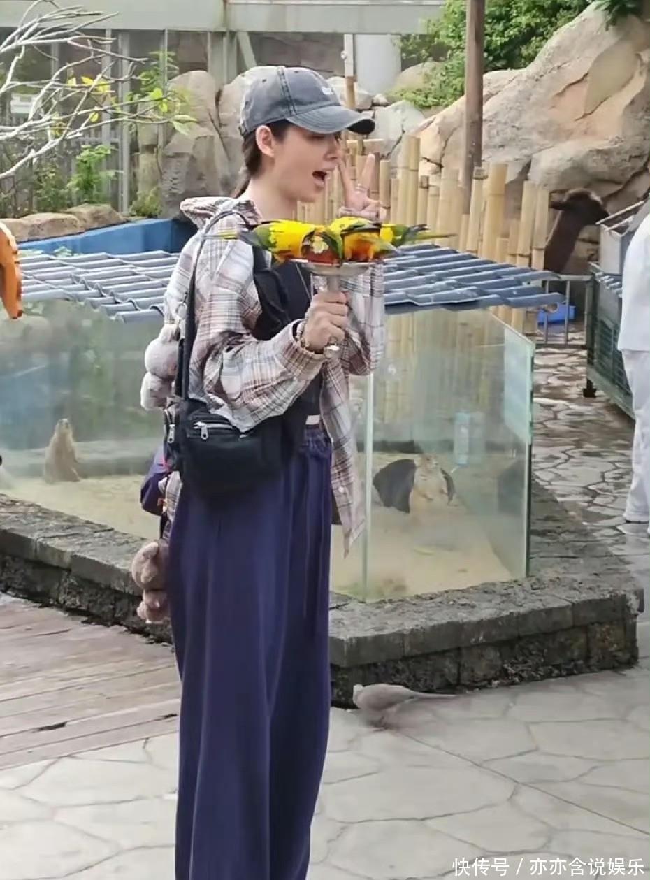 前几日,郭碧婷父亲在个人账号晒出一组逛动物园的照片,照片中,郭碧婷穿着朴素的灰色T恤和运动裤,完全没有明星架子,看起来更像是动物园工作人员。