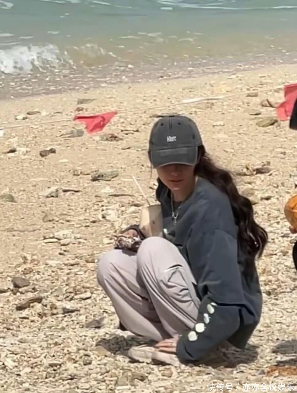 从照片上看,郭碧婷穿着洗得发白的灰色卫衣和休闲裤,蹲在地上专心捡石头,素面朝天的样子让人大吃一惊!这和前天在三亚国际时尚活动上那个披着披肩、头发丝都在发光的贵妇形象,简直判若两人!